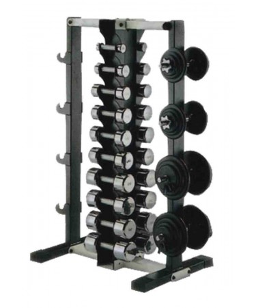 The vertical dumbbells offer the option of storing a maximum number of dumbbells in a minimum amount of space. They will be able to accommodate from 3 pairs to 20 pairs.